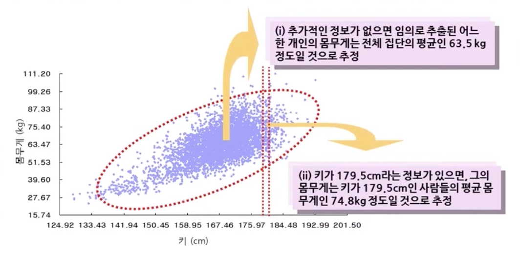 - 회귀직선은 평균의 그래프를 하나의 직선으로 근사 시킨 것